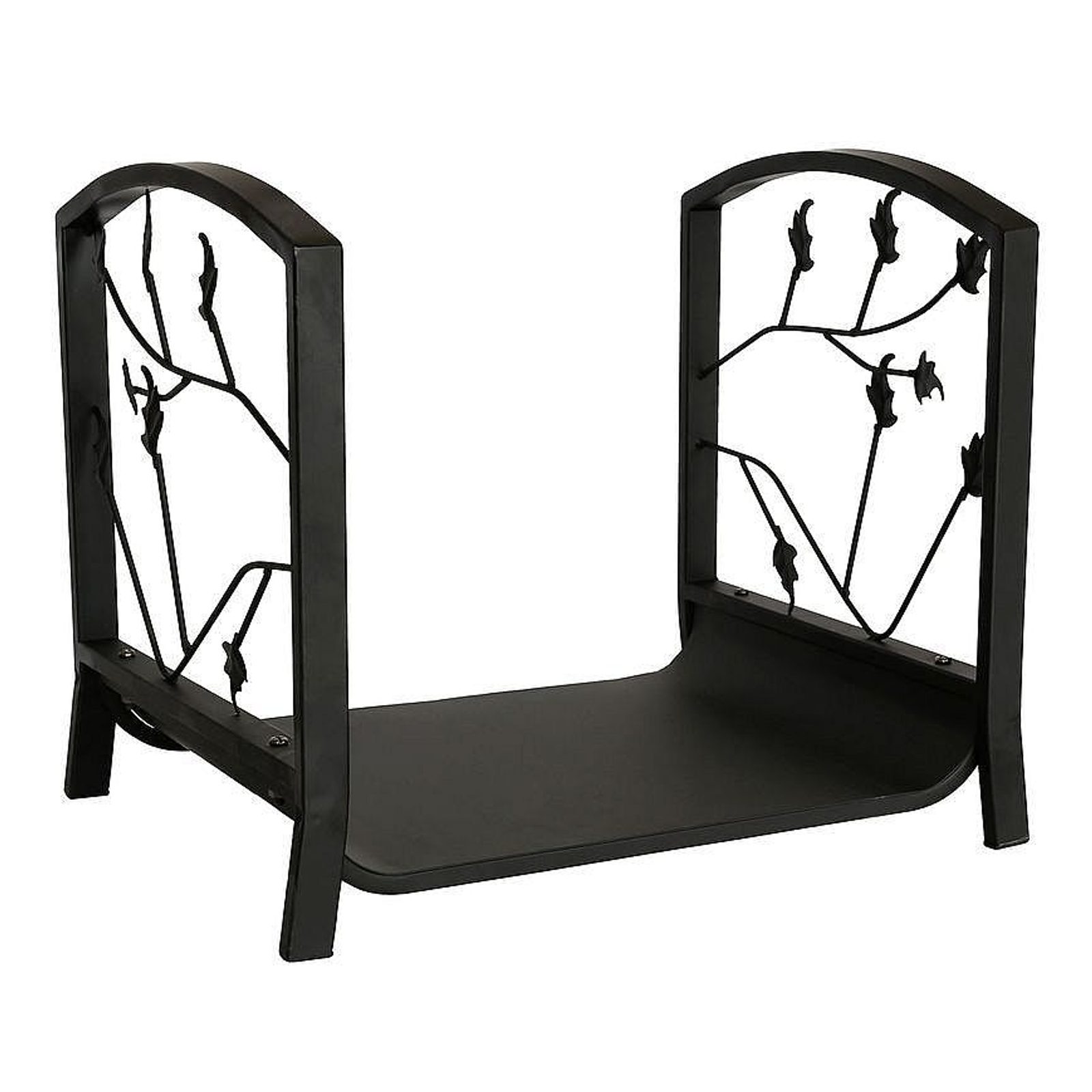 Stojan na palivové dřevo ke krbu v černé barvě s bočními stranami s dekorem listů.
