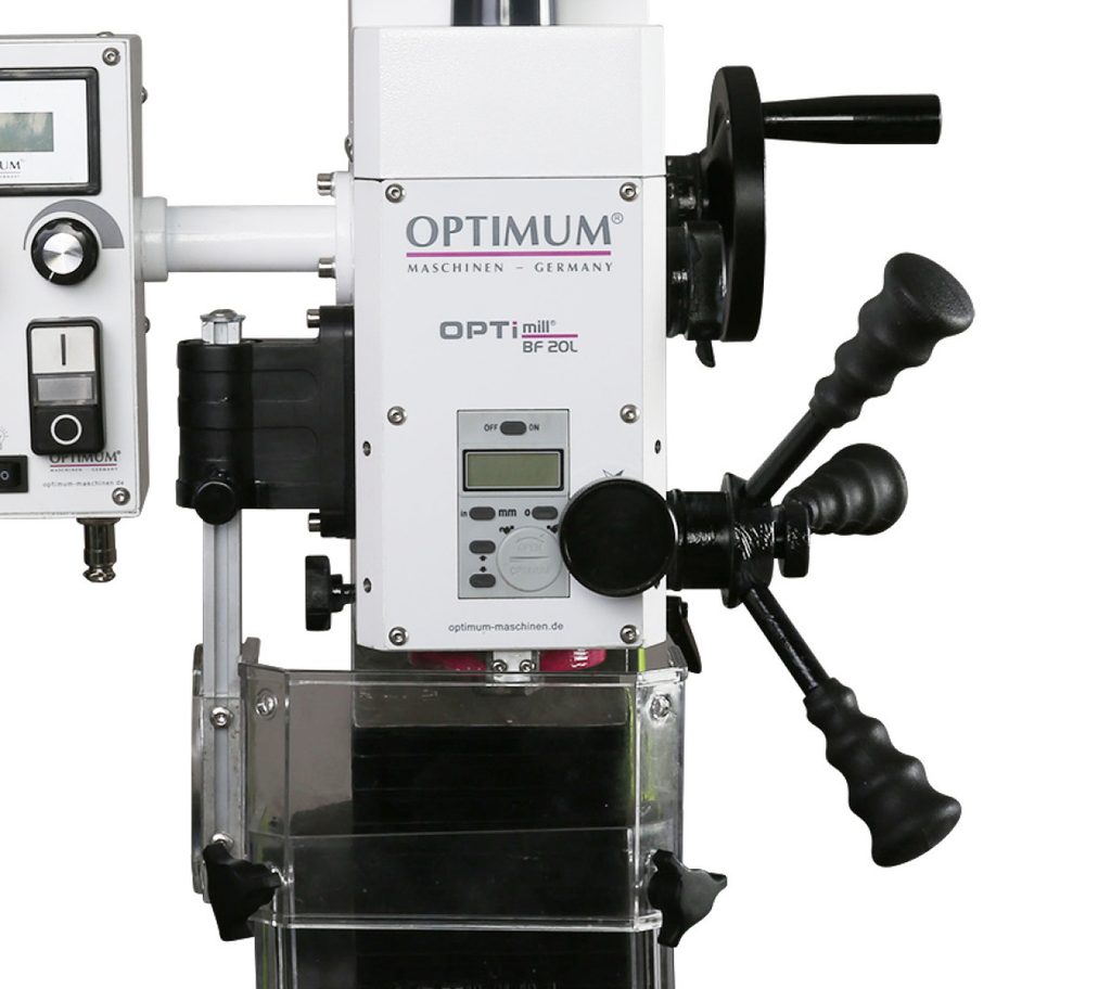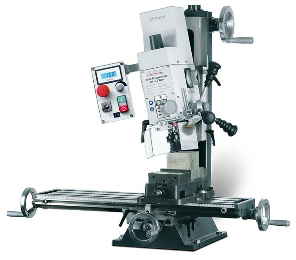 Stabilní vrtačko-frézka pro přesnou, rychlou a bezpečnou práci. S elektronicky plynule regulovatelným pohonem a digitálním odečítáním zdvihu pinoly a digitálním zobrazením počtu otáček. Verze L má větší křížový stůl - v ose X má rozsah posuvu 480 mm.