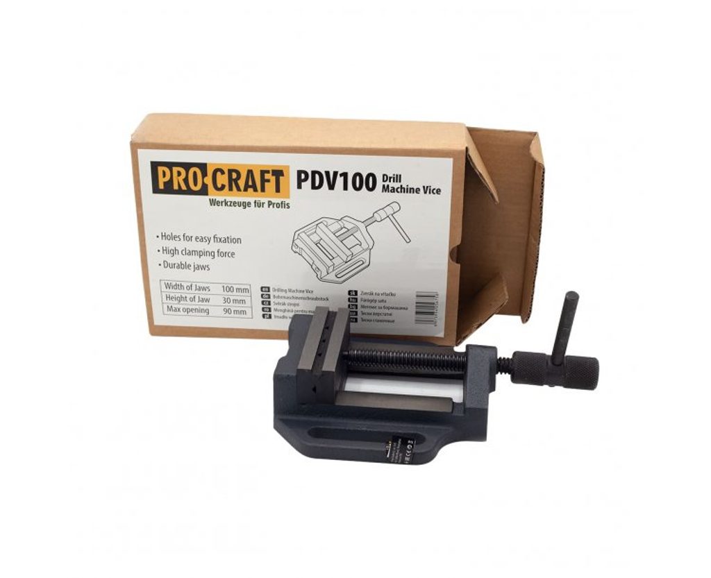Procraft PDV100 je přesný a spolehlivý svěrák určený především pro použití pod vrtačkou. Jeho stabilní konstrukce, přesné vedení čelistí a jednoduché upevnění na stůl z něj dělají nepostradatelného pomocníka pro každého, kdo potřebuje precizní sevření obrobku při vrtacích a jemných dílenských pracích.