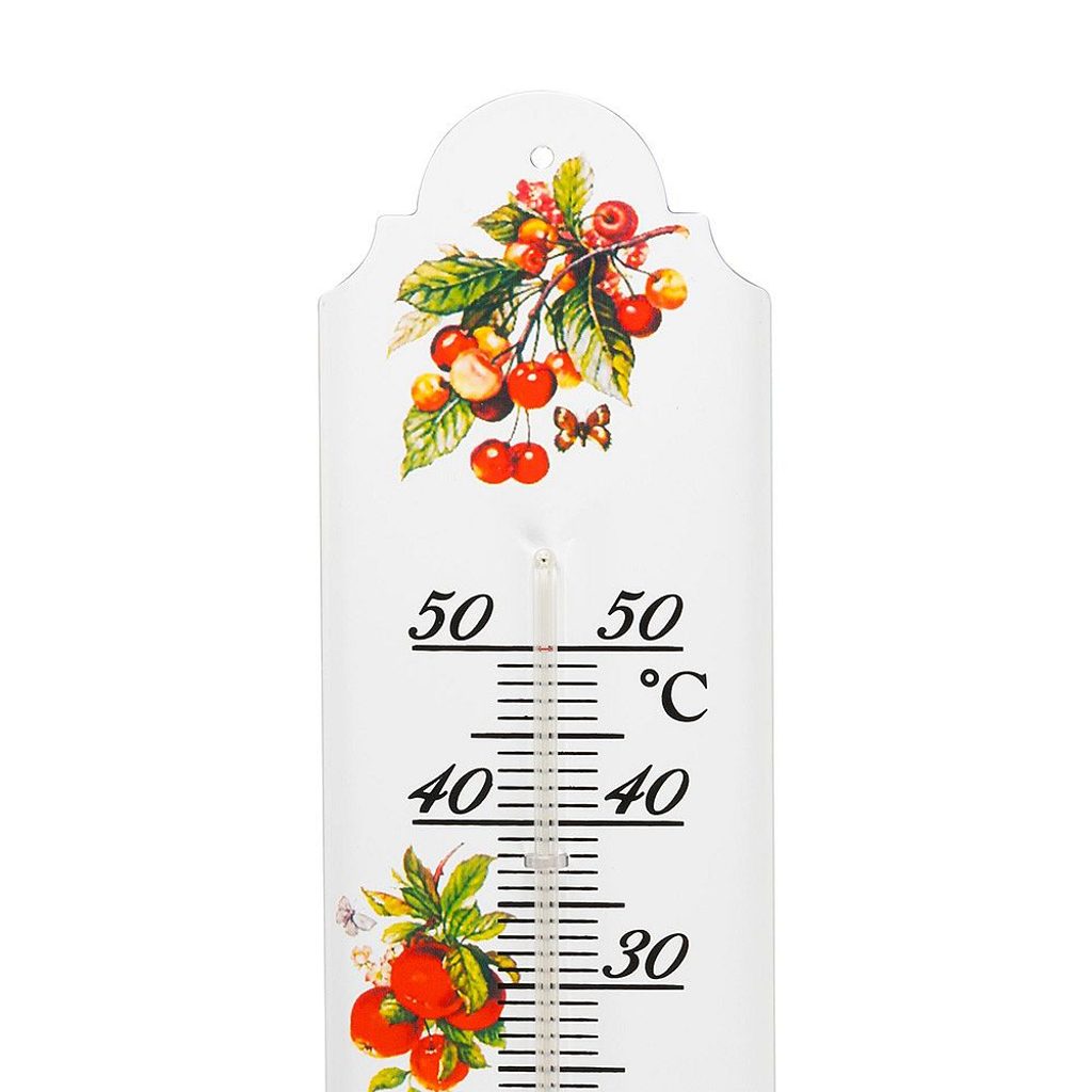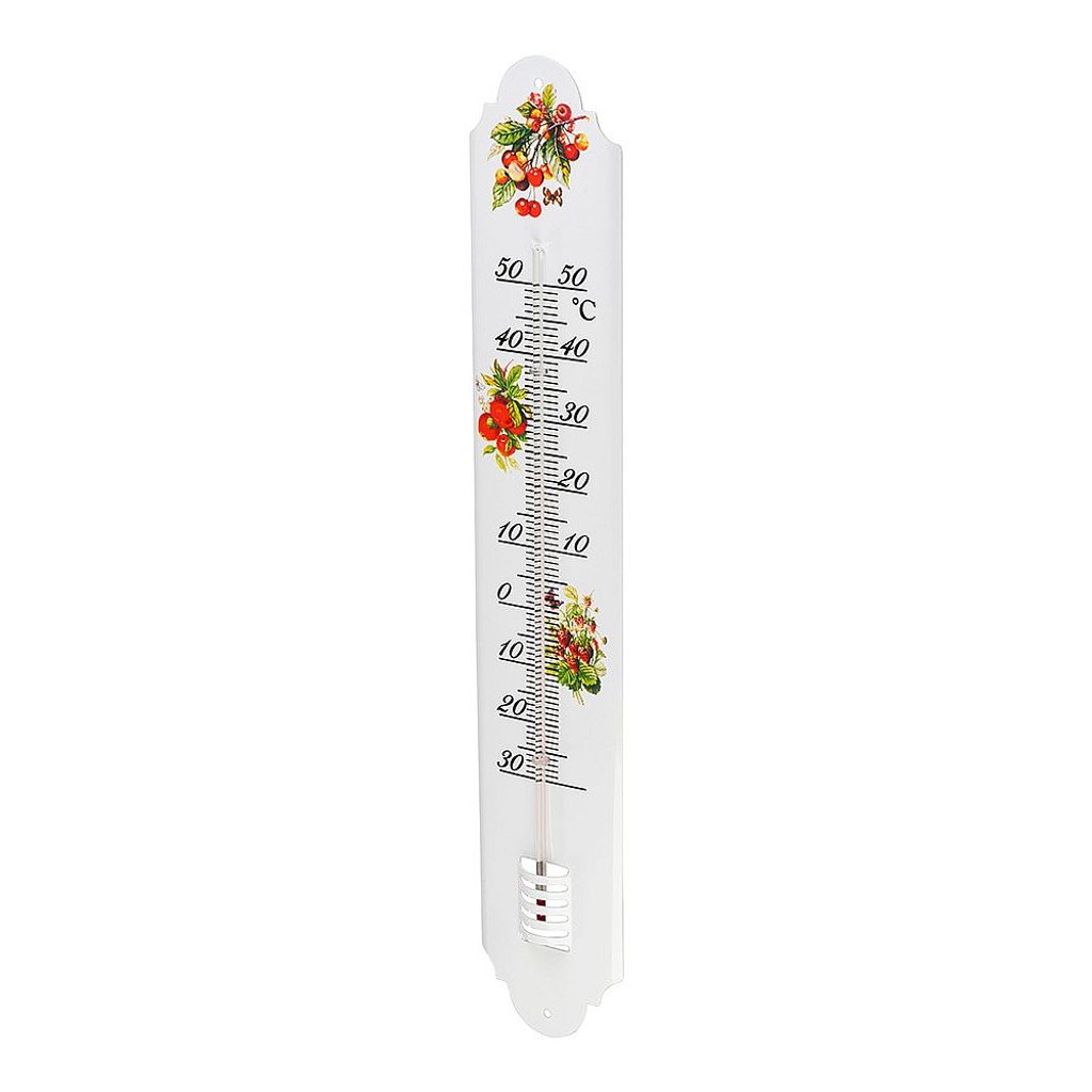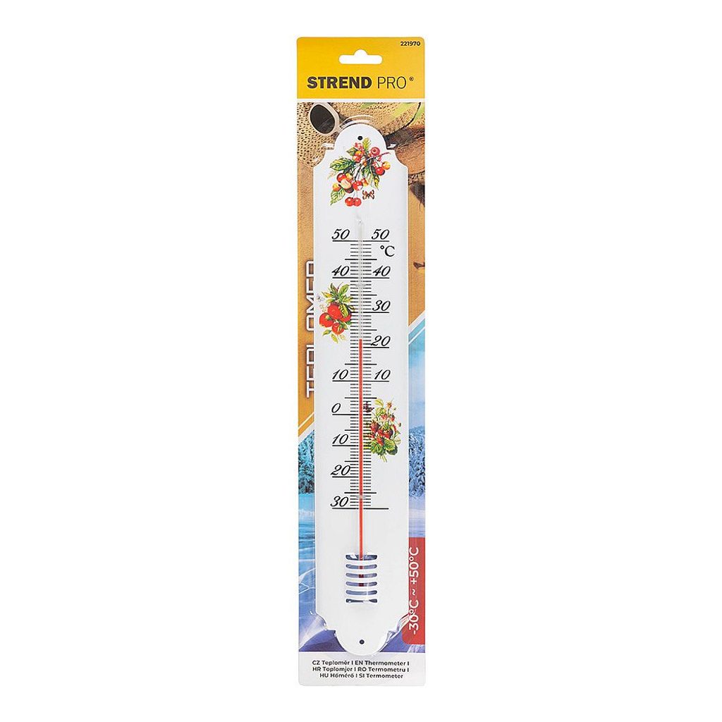Venkovní teploměr s lidovým motivem měří teplotu v rozsahu od 50°C do -30°C.