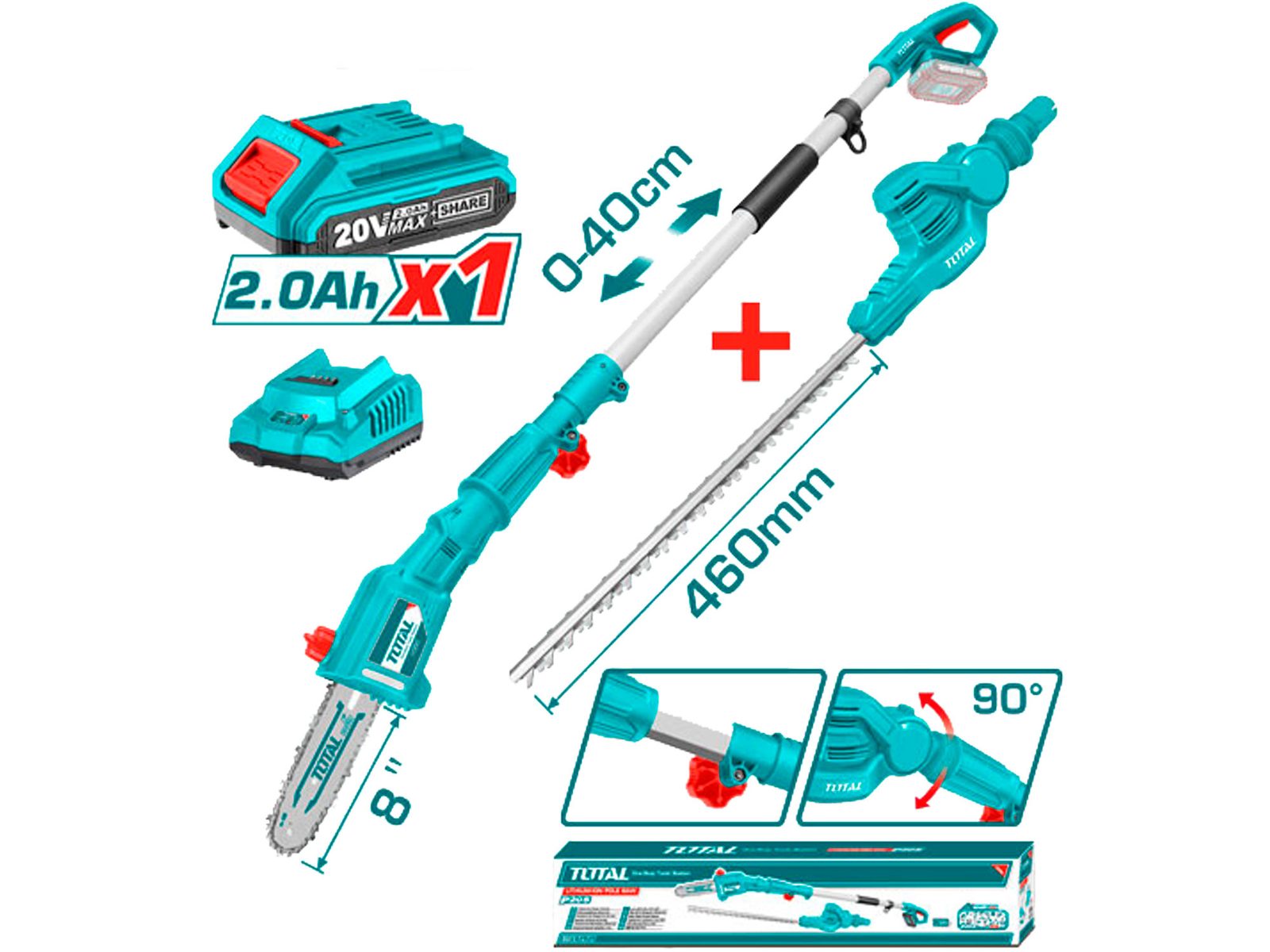 Buďte první, kdo ohodnotí "Total Pila na větve a nůžky na živé ploty, AKU, 20V LI-ION, 1x baterie, 1x nabíječka, TPTS201681"