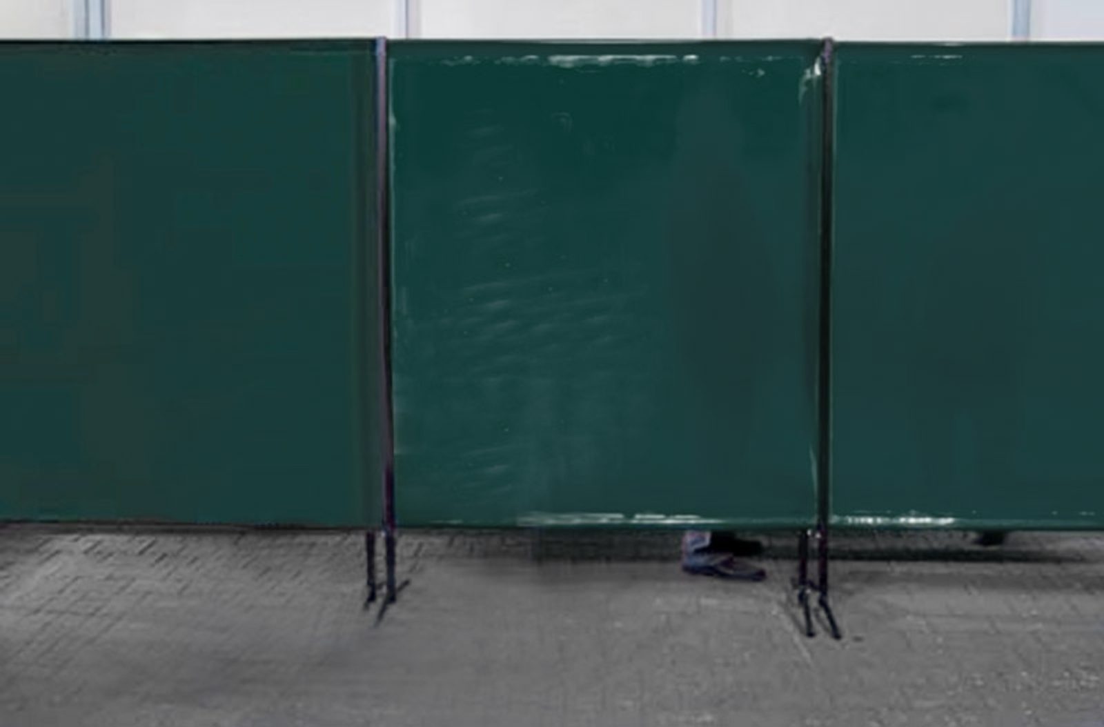 Mobilní ochranná zástěna se dvěma stojany, libovolně rozšiřovatelná.