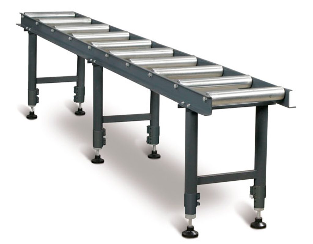 Válečková trať pro podávání rozměrných a těžkých materiálů při řezání.