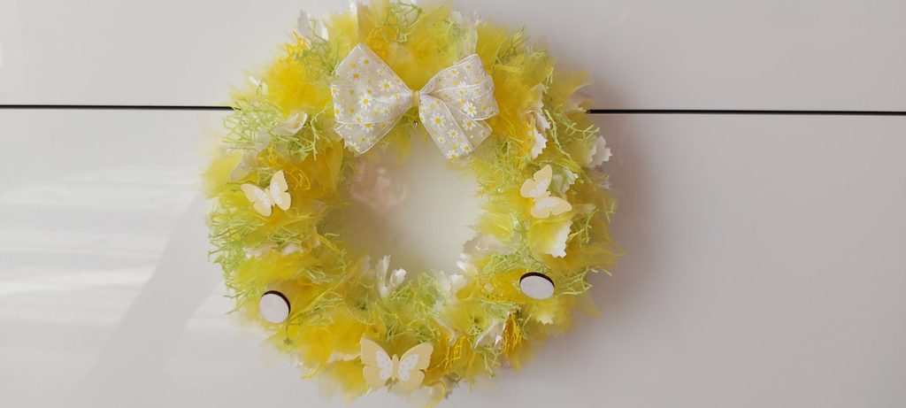 Velikonoční věnec žlutý, pr. 25 cm v krásných jarních barvách bude zdobit váš krásný domov. Přivítejte jaro s krásným věncem na vašich dveřích.