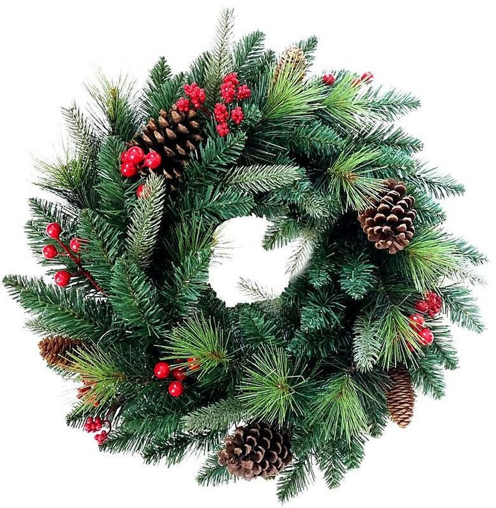 Jedná se o vkusný přírodní věnec s jmelím a šiškami.