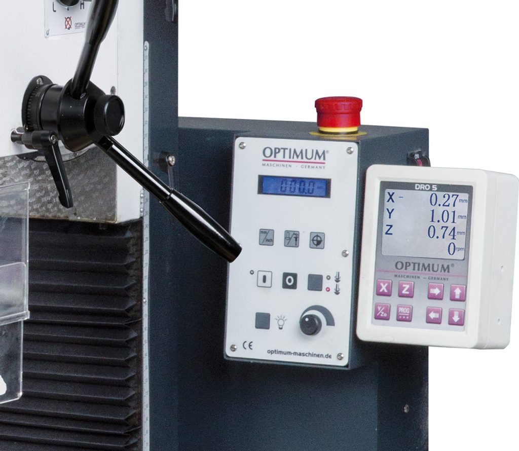 Stabilní vrtačko-frézka s elektronickou plynulou regulací otáček a digitálním měřičem polohy DRO 5.
