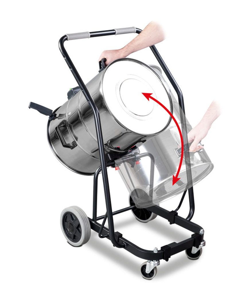 Třímotorový antistatický vysavač pro vysávání prachu a jiných pevných částic v nepřetržitém provozu s nerezovou nádobou, třemi filtry a naklápěcím mechanismem. Vestavěná zásuvka pro připojení elektrického nářadí s automatickým spuštěním při zapnutí nářadí. Automatické čistění filtrů.
