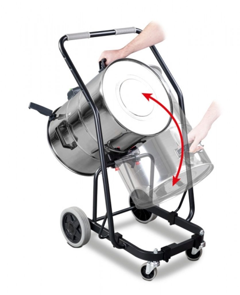 Třímotorový vysavač určený pro vysávání kapalin, třísek a dalších pevných částic s nerezovou nádobou a naklápěcím mechanismem. Vestavěná zásuvka pro připojení elektrického nářadí bez automatického spuštění při zapnutí nářadí.