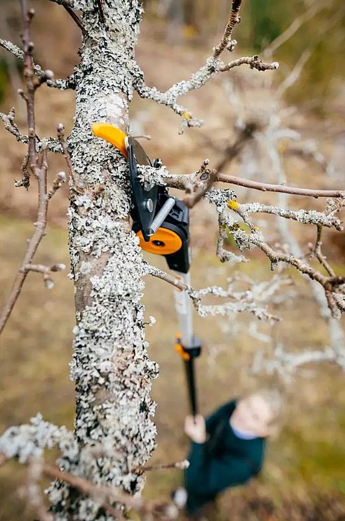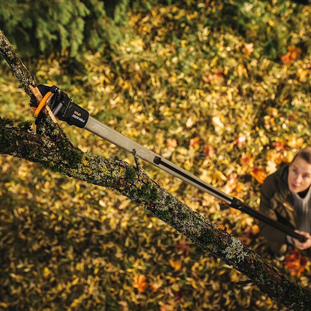 Teleskopické nůžky na stromy Fiskars UPX86 jsou vybaveny důmyslným mechanismem pro zvýšení výkonu při každém střihu a výsuvnou tyčí.
