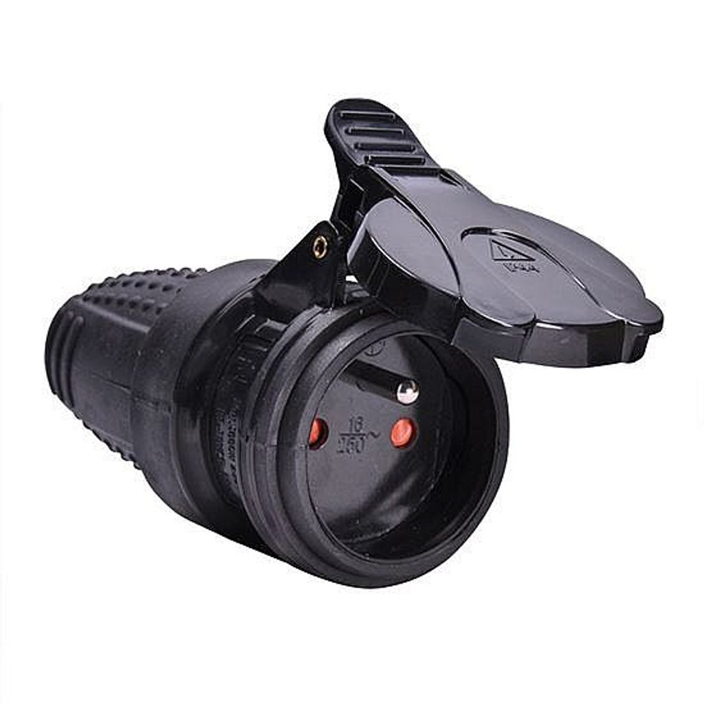 Zásuvka gumová, do vlhka, přímá, IP44, černá.